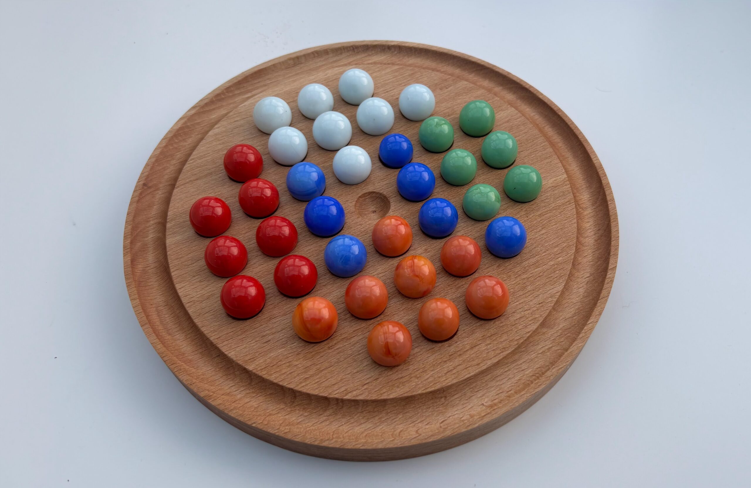 The board is paired with coloured glass marbles, adding contrast and vibrancy against the warm beech wood. Both decorative and interactive, it’s a classic strategy game that looks just as beautiful on display as it does in play.