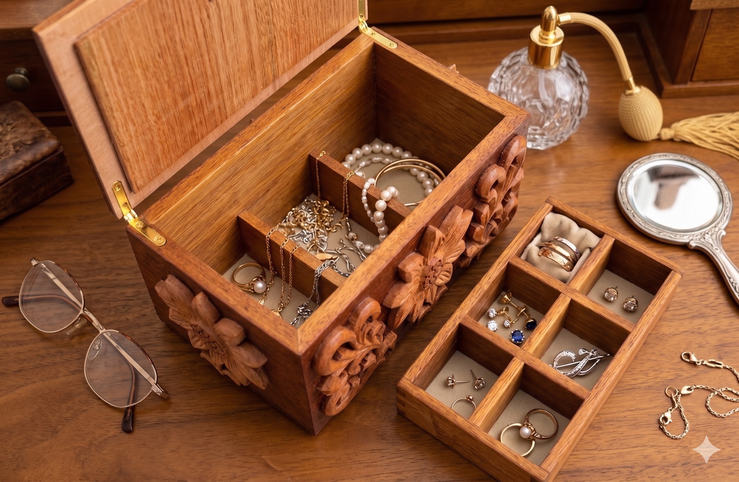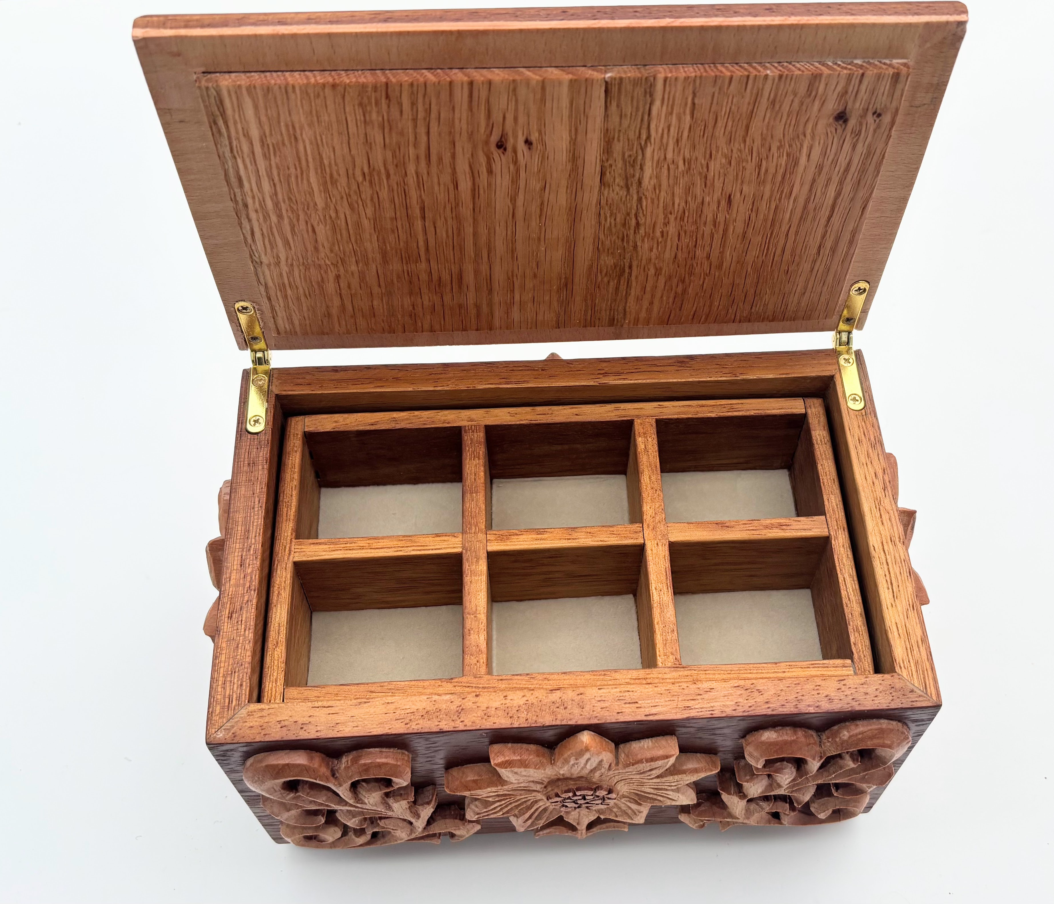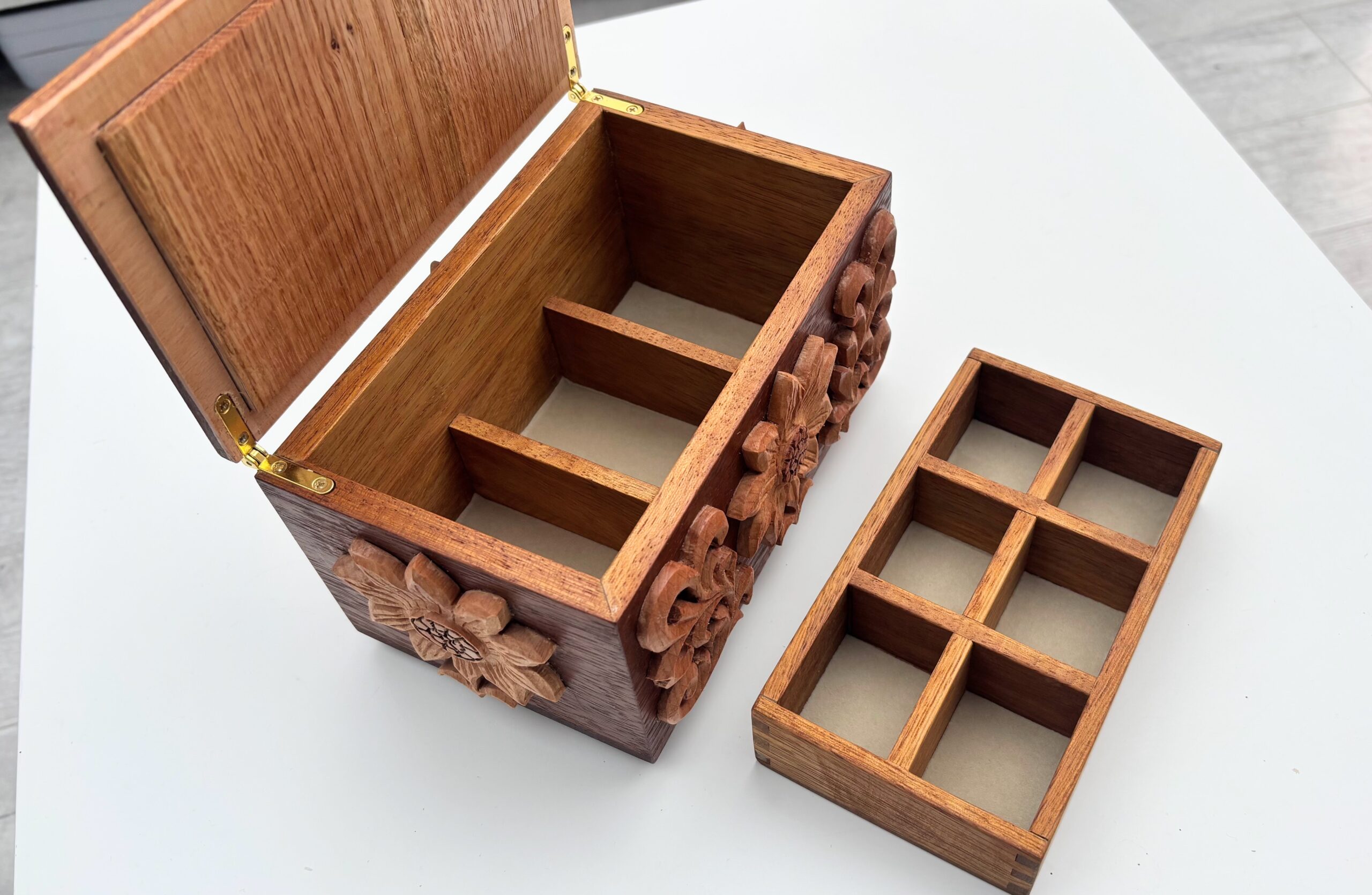 Hand-Carved Hardwood Jewellery Box
